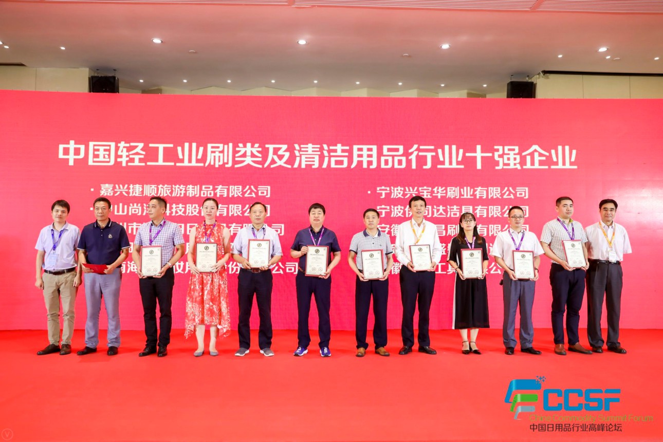 2018年7月8-10日 ,主題為“新時代 新消費 新機遇”中國輕工業十強企業高峰論壇在廣州召開,我司李愛良董事長參加了此次高峰論壇會議。會議期間,經中國輕工業聯合會與中國日用雜品工業協會聯合認定,寧波伊司達潔具有限公司榮獲“中國輕工業刷類及清潔用品行業十強企業”榮譽稱號。