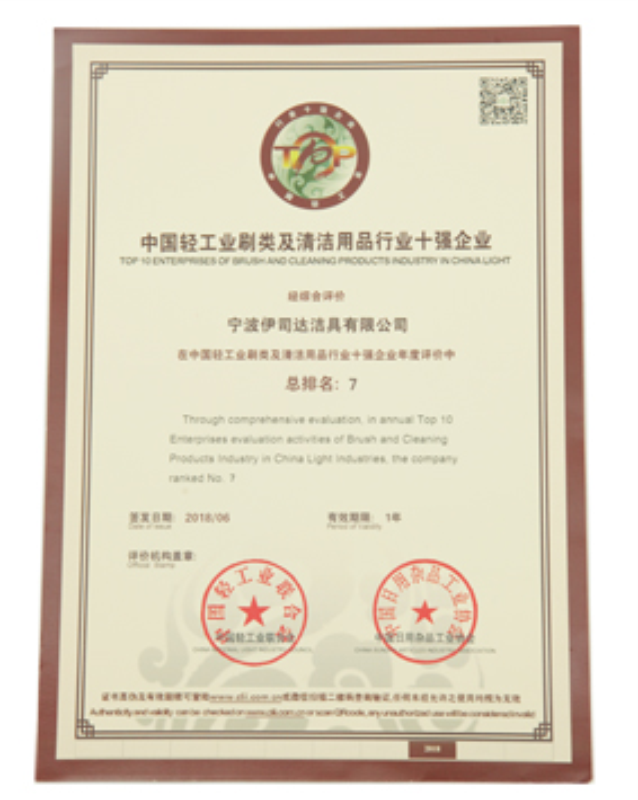 中国轻工业刷类及清洁用品行业十强企业