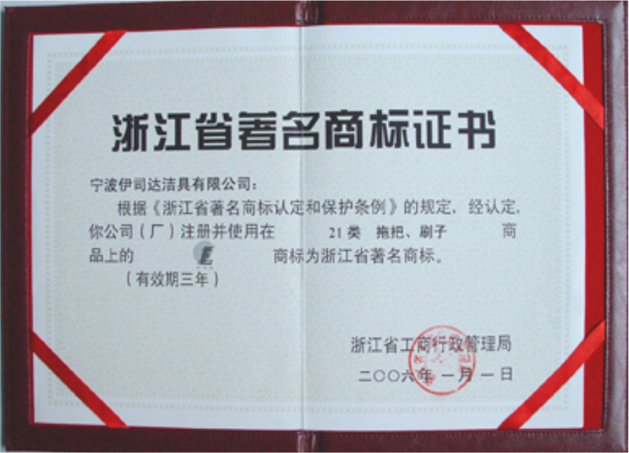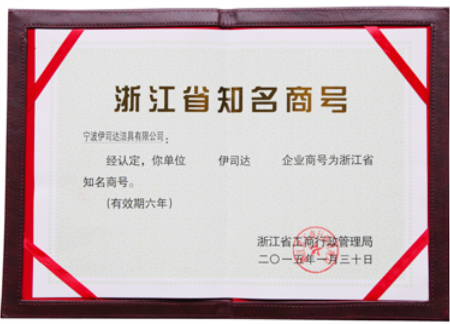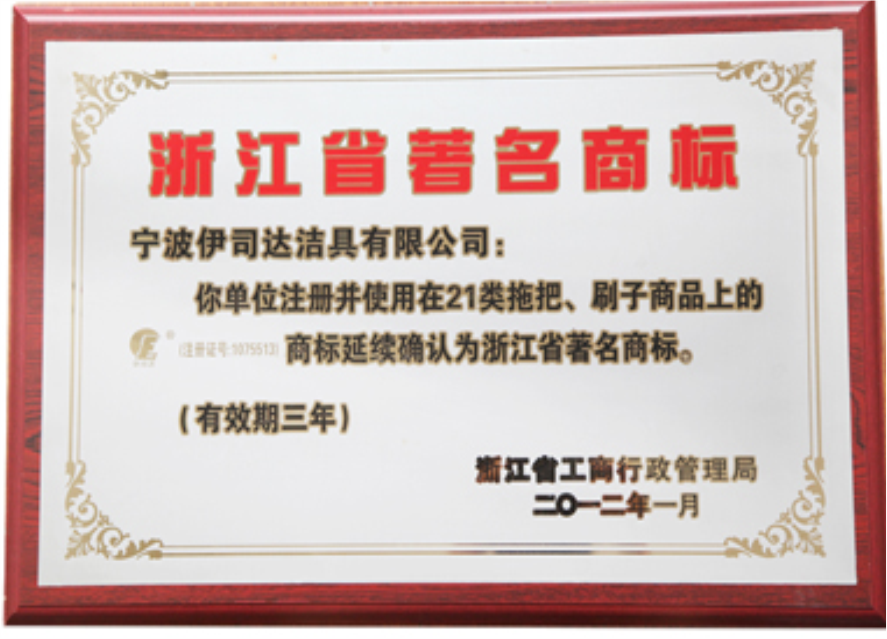 伊司達(dá)商標(biāo)被評為浙江省著名商標(biāo)