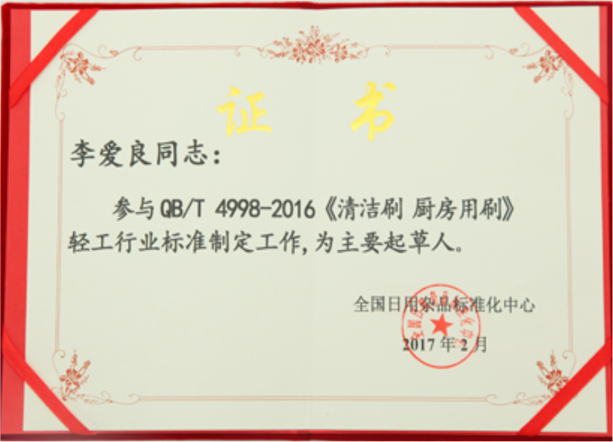 廚房用刷行業(yè)標(biāo)準(zhǔn)起草人