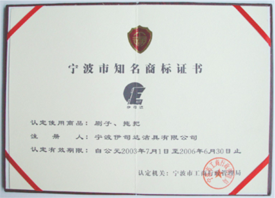 “伊司達(dá)”商標(biāo)被評為寧波市知名商標(biāo)